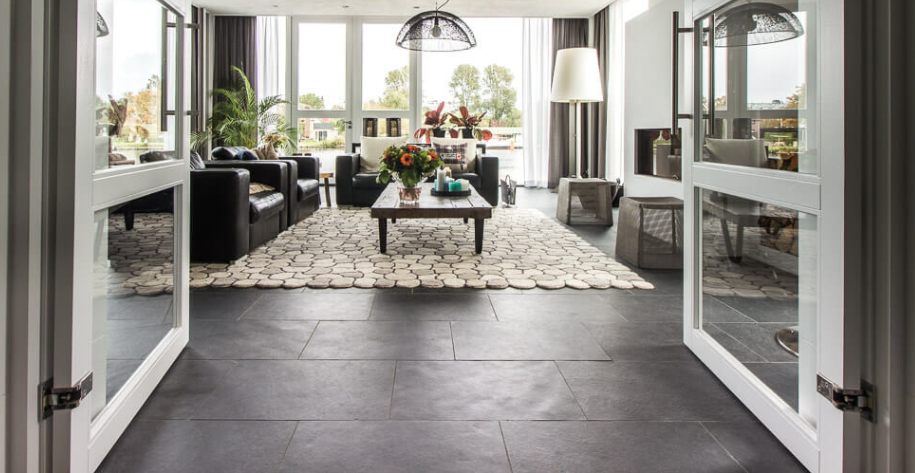 Deze prachtige Black Berry leisteen vloer van de Fam. Lommers, is gekocht bij “van den Heuvel & van Duuren”. In veel gevallen wordt de vloer dan door ons gelegd. Zo ook hier. Van de vloer, plinten, wandtegels tot aan het mozaïek, alle materialen zijn hier door ons verwerkt. Ook het impregneren van de badkamer is verzorgt door “van den Heuvel & Zn.”.